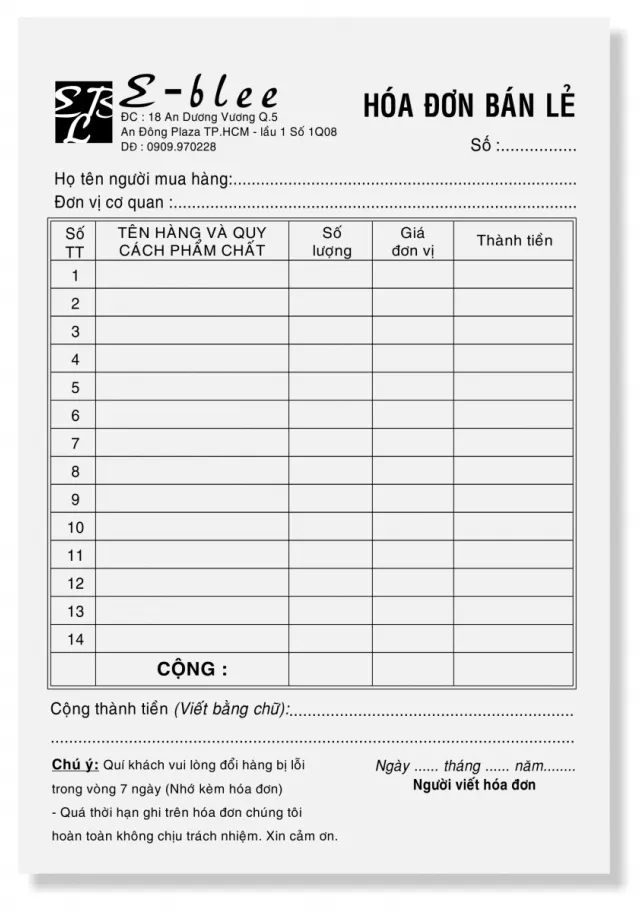 In hóa đơn cho cửa hàng bán lẻ