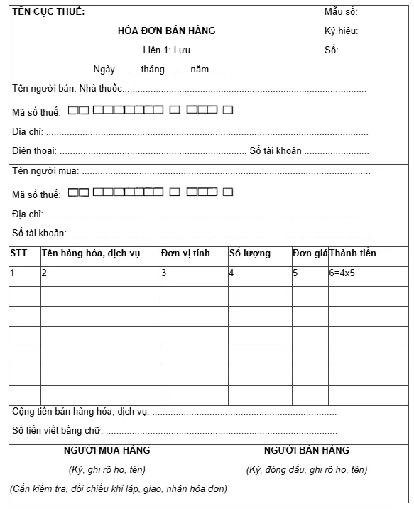 In hóa đơn nhà thuốc chuẩn mẫu